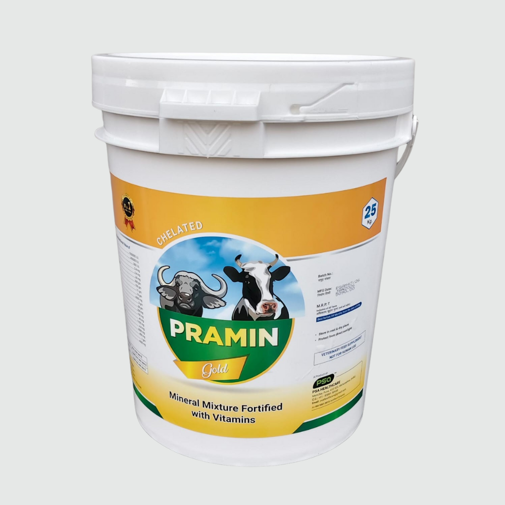 Product Type: Chelated Mineral Mixture Fortified with Vitamins Nutritional Value (Each 1 Kg has): Vitamin A (1000000 I.U.) , Vitamin D3 (400000 I.U.) , Vitamin E (300 I.U.) , Vitamin B12 (2.4 mg) , Vitamin K (0.4 mg) , Choline Chloride (60 mg) , Calcium (300 gm) , Phosphorous (150 gm) , Manganese (11 gm) , Shatawari (16 gm) , Leptadenia (6000 mg) , Iron (3 gm) , Copper (0.8 gm) , Cobalt (200 mg) , Chromium (100 mg) , Selenium (40 mg) , DL-Methionine (1.920 mg) , L-lysine Mono HCL (4.4 mg) , Zinc (3000 mg) , Iodine (400 mg) , Yeast (1 gm) , Carbohydrate (4000 mg) .Benefits: Increase milk productions , Improves fertility in animals , Maintains health , Stabilize ruminal pH , Enhances reproductive performances , Reduces the impact of heat stress , Improve action of fibre digesting bacteria .Instruction for Usage: Large Animals: 50 Gm Daily; Small Animals: 25 Gm Daily; Or 1 kg-2 kg to be mixed in 100 kg feed.
